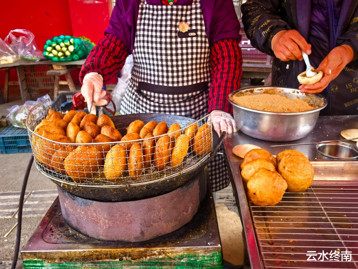 各家的油糕还都有特色,红糖的红豆的糯米的,有的炸颜色浅些有些炸颜色深些,各取所爱。当其他地方的油糕越卖越贵越卖越小的时候,这里还是一块钱一个。